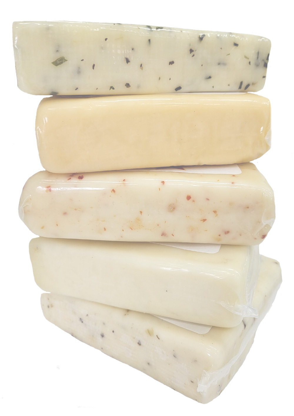 We start with our basic Jack cheese then we add sun dried tomatoes and add fresh basil. These two compliment the flavor and is a very palatable taste experience. This cheese is zesty yet mild.